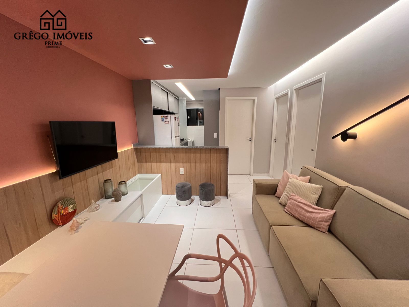 - Todo mobiliado e equipado com móveis fixos na sala, cozinha, banheiro e quarto, cama de casal;
