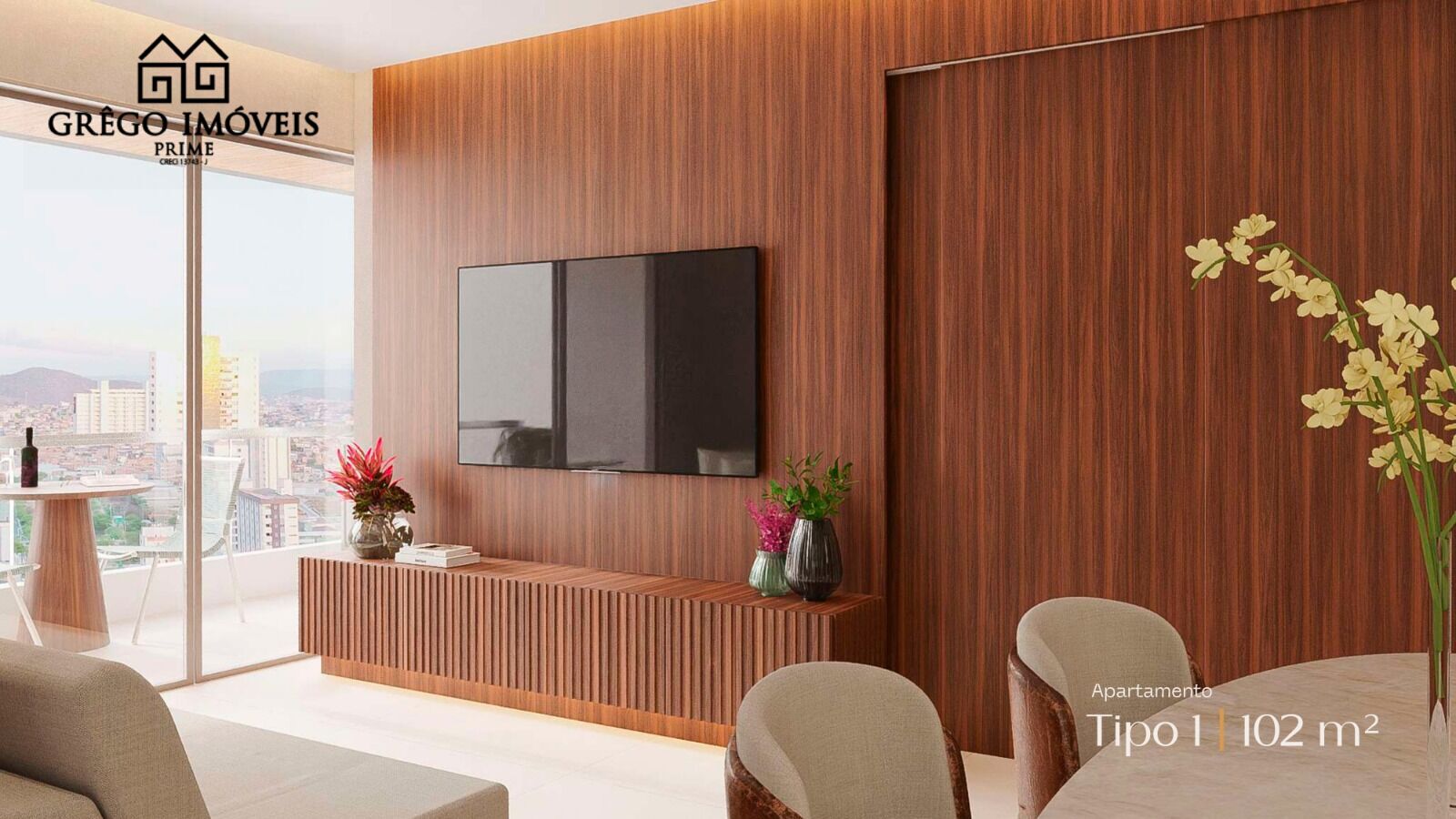 Um apartamento pensado para quem busca mais espaço, conforto e liberdade para viver cada fase da vida com qualidade. Com 102m², essa tipologia entrega uma planta generosa e muito bem distribuída, com ambientes amplos e integrados que valorizam o convívio familiar sem abrir mão da privacidade.