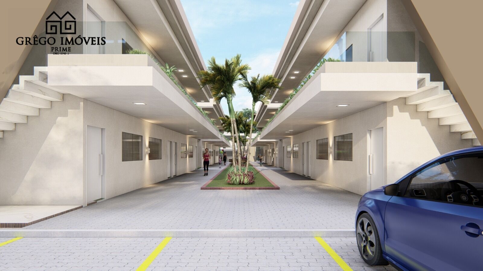 Unidades com 2 tipologias: térreo com garden e primeiro andar com varanda;