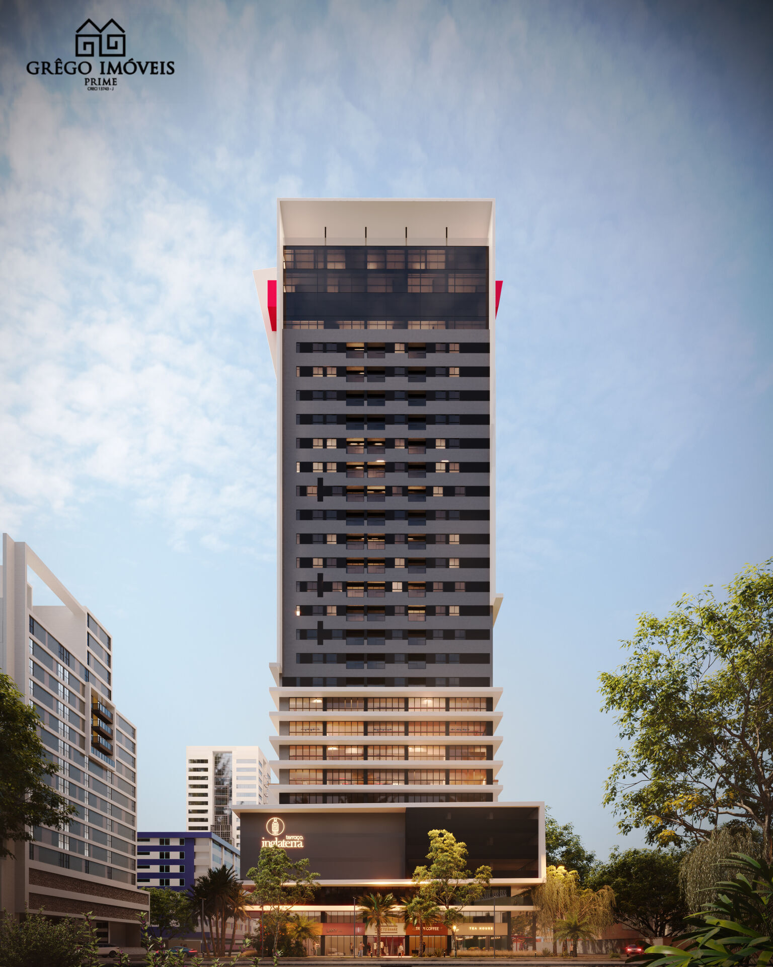 O Terraço Inglaterra será um edifício aberto para a cidade , com espaços gourmet, lojas e salas empresariais, além de estar envolvido com o seu entorno, democrático e dinâmico, intrigante e provocativo. Um convite a uma arquitetura que se moderniza e acompanha as tendências, mas sem perder os elementos que tornam um projeto arquitetônico um ecossistema único.